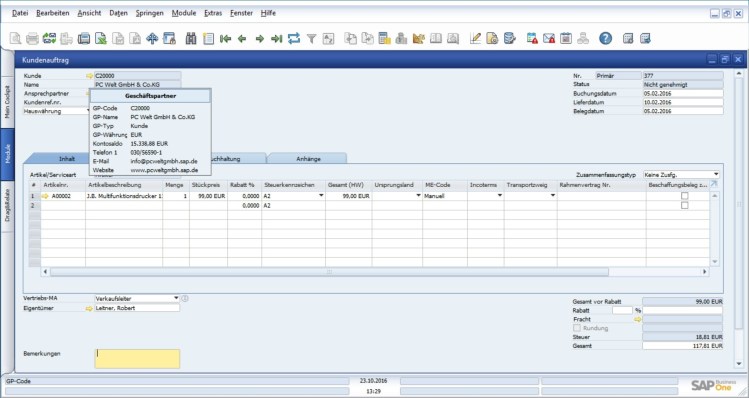 Die Tooltips sind sowohl für die SQL- als auch die HANA-Version von SAP Business One 9.2 PL04 verfügbar.
